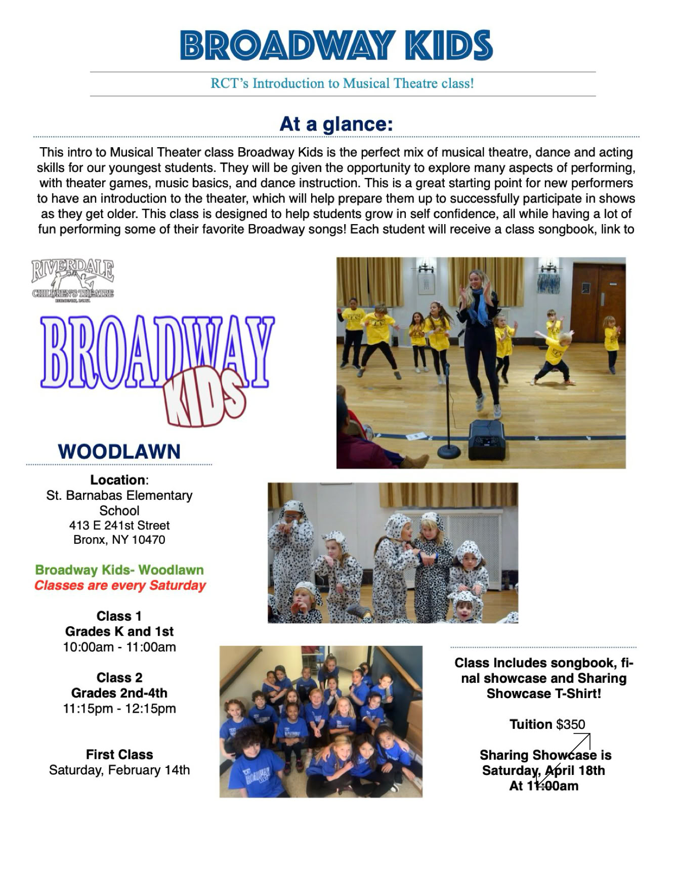 (Due to scheduling problems, RCT is only offering Broadway Kids classes at the Barnabas Location for Spring 26)